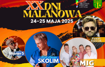 Serdecznie zapraszamyna XX Dni Malanowa24-25 maja 2025 r.(boisko piłkarskie przy ul. Parkowejw Malanowie) Zapewniamy wspaniałą zabawęi niezliczoną liczbę atrakcji! Regulamin Imprezy Masowej oraz Regulamin Terenu Imprezy MasowejXX Dni Malanowa dostępny w załącznikach. INFORMACJA O PARKINGACH I OGRANICZENIU RUCHU Dla uczestników Dni Malanowa zabezpieczono 2 parkingi: parking na posesji Państwa Kubackich parking firmy Sun Garden – dojazd tylko od strony Grąbkowa. W trakcie obchodów XX Dni Malanowa nastąpi wyłączenie z ruchu kołowego odcinka ulicy Parkowej od skrzyżowania z ulicą Spółdzielców do drogi dojazdowej na parking Firmy SUN GARDEN. Wyłączenie nastąpi w dniu 24.05.2025 r. w godz. 16.00-2.00 oraz w dniu 25.05.2025 r. w godz. 15.45 -24.00. Prawo wjazdu ...