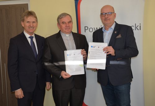 Powiat Turecki pozyskał dofinansowanie na udzielanie dotacji z Programu Ochrony Zabytków w ramach Rządowego Funduszu Polski Ład dla Parafii Rzymskokatolickiej pw. Najświętszego Serca Pana Jezusa w Turku o łącznej wartości 1 400 000 zł na prace konserwatorskie, restauratorskie, roboty budowlane przy zabytku wpisanym do rejestru zabytków lub znajdującym się w gminnej ewidencji zabytków. Zadania będą polegały na remoncie ścian północnej i wschodniej kościoła, a także na wykonaniu drenażu wokół obiektu i podłączeniu do kanalizacji deszczowej. Dziś Starosta Turecki Dariusz Kałużny i Wicestarosta Władysław Karski podpisali umowy z Księdzem Proboszczem Markiem Kasikiem na udzielenie dotacji celowych na realizację powyższych...