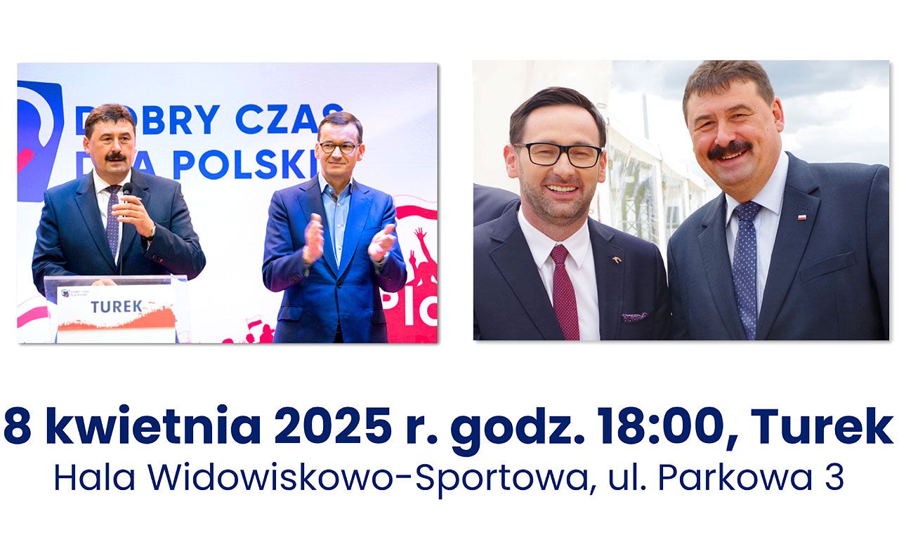 Spotkanie z Premierem Mateuszem Morawieckim i Europosłem Danielem Obajtkiem w Turku. Zaprasza poseł na sejm Ryszard Bartosik. Zapraszamy na spotkanie z Premierem Mateuszem Morawieckim oraz Europosłem Danielem Obajtkiem, które odbędzie się 8 kwietnia 2025 r. o godzinie 18:00 w Hali Widowiskowo-Sportowej w Turku (ul. Parkowa 3). Wydarzenie będzie okazją do rozmowy na temat bieżącej sytuacji politycznej, gospodarczej oraz przyszłości...