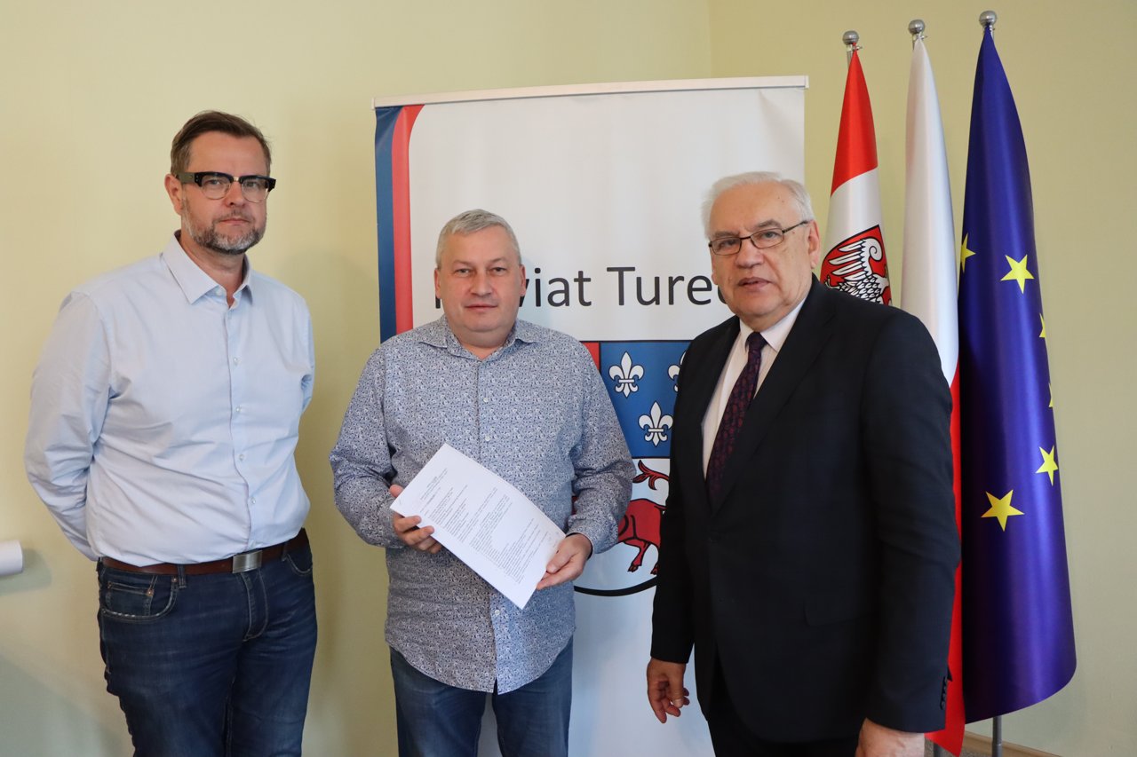 W gabinecie Starosty Tureckiego Jana Smaka podpisano kolejną ważną umowę drogową, dotyczącą poprawy infrastruktury w Turku. W dniu 25.04.2025 r. Kierownik Zarządu Dróg Powiatowych w Turku Roman Kacprzak zawarł umowę z Prezesem Zarządu Przedsiębiorstwa Robót Drogowo–Mostowych S.A., Pawłem Andrzejczakiem, na realizację zadania pn. „Remont ulic powiatowych nr 4526P – ul. Legionów Polskich i nr 4525P – al. Józefa Piłsudskiego w Turku, etap II – remont odcinka ul. Legionów Polskich”. Zakres prac w ramach II etapu obejmuje ułożenie nowej nawierzchni asfaltowej na odcinku o długości 140 metrów bieżących. Wartość inwestycji wynosi 195.959,91 zł i zostanie sfinansowana ze środków Powiatu...