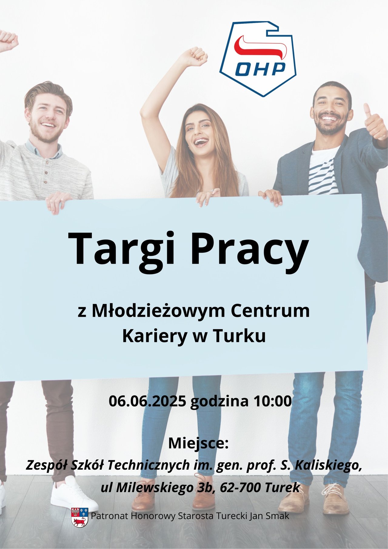 Drodzy Uczniowie i Rodzice, z ogromną przyjemnością zapraszamy Was na Targi Pracy, organizowane przez Młodzieżowe Centrum Kariery w Turku! To doskonała okazja, aby zapoznać się z ofertami zatrudnienia, odbyć inspirujące rozmowy z przedstawicielami różnych branż oraz zdobyć cenne wskazówki dotyczące planowania kariery zawodowej. Data: 06 czerwca 2025 r., godz. 10:00. Miejsce: Zespół Szkół Technicznych im. gen. prof. S. Kaliskiego, ul. Milewskiego 3b. Wydarzenie odbywa się pod Patronatem Honorowym Starosty Tureckiego Jana Smaka. Nie przegapcie tej wyjątkowej okazji! To doskonały moment na zdobycie nowych doświadczeń i rozpoczęcie drogi ku wymarzonej pracy. Serdecznie...
